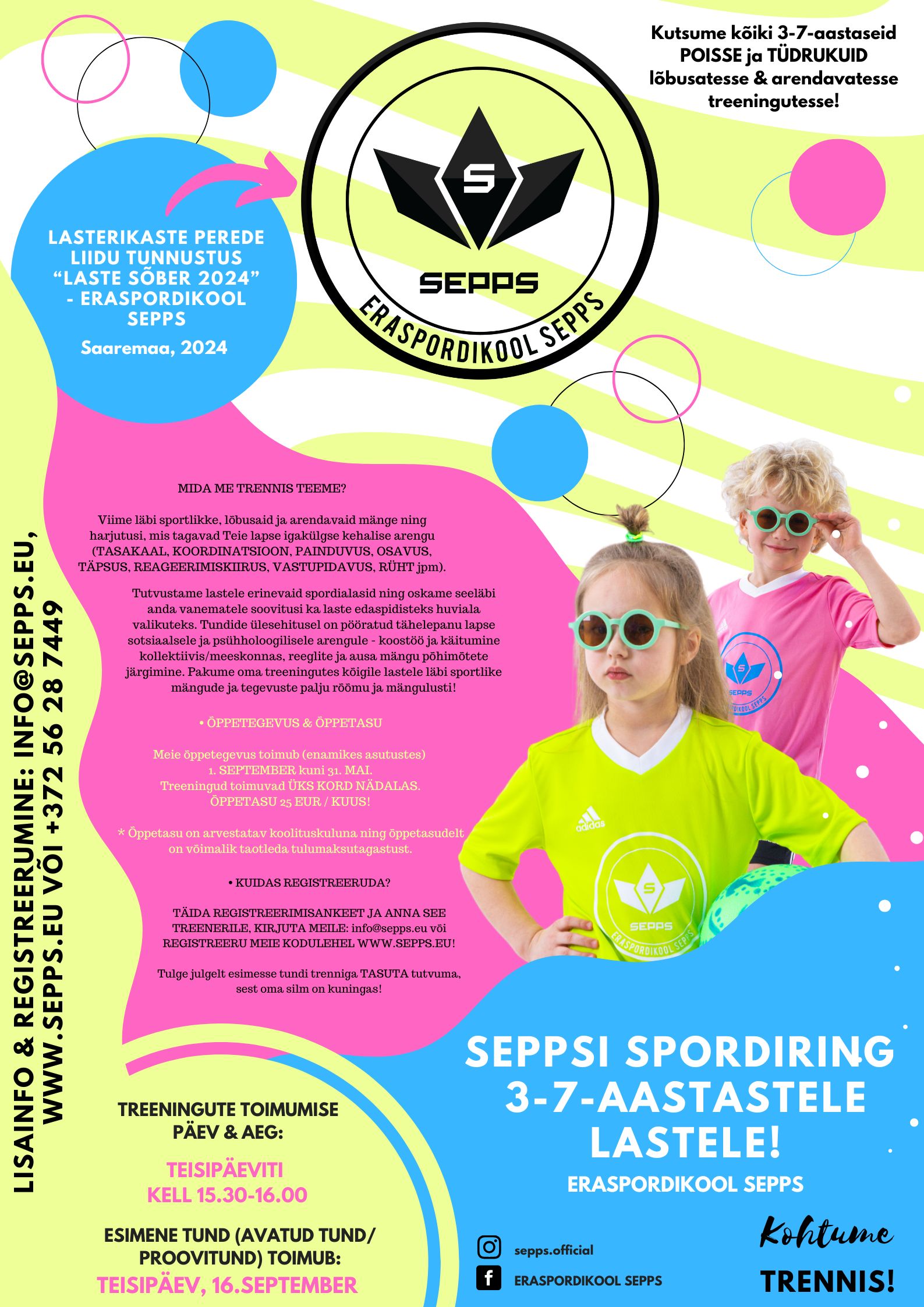 ERASPORDIKOOL SEPPS kutsub kõiki Kiili Kangru lasteaia lapsi vahvatesse, kaasahaaravatesse ja arendavatesse SEPPSi spordiringi tundidesse!