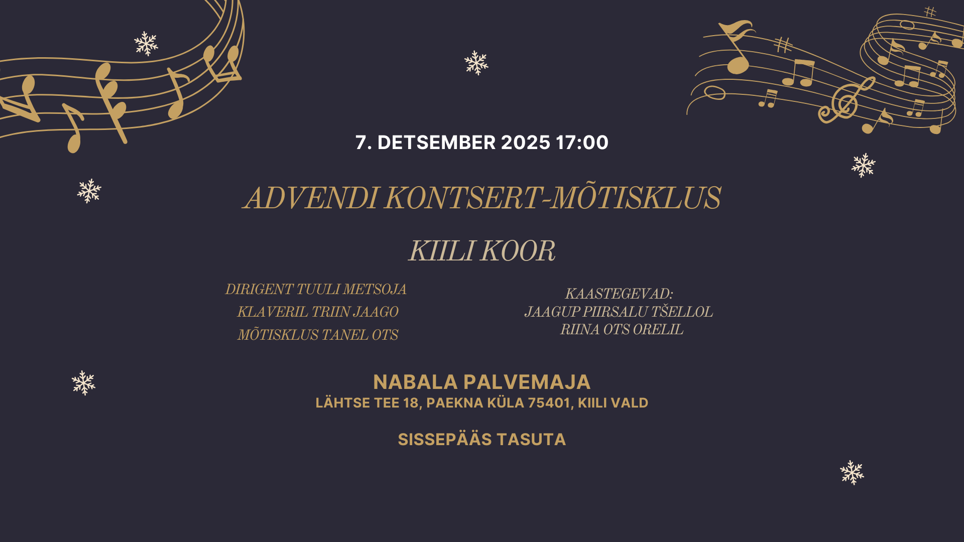 P, 7. detsember 17:00Toimumiskoht: