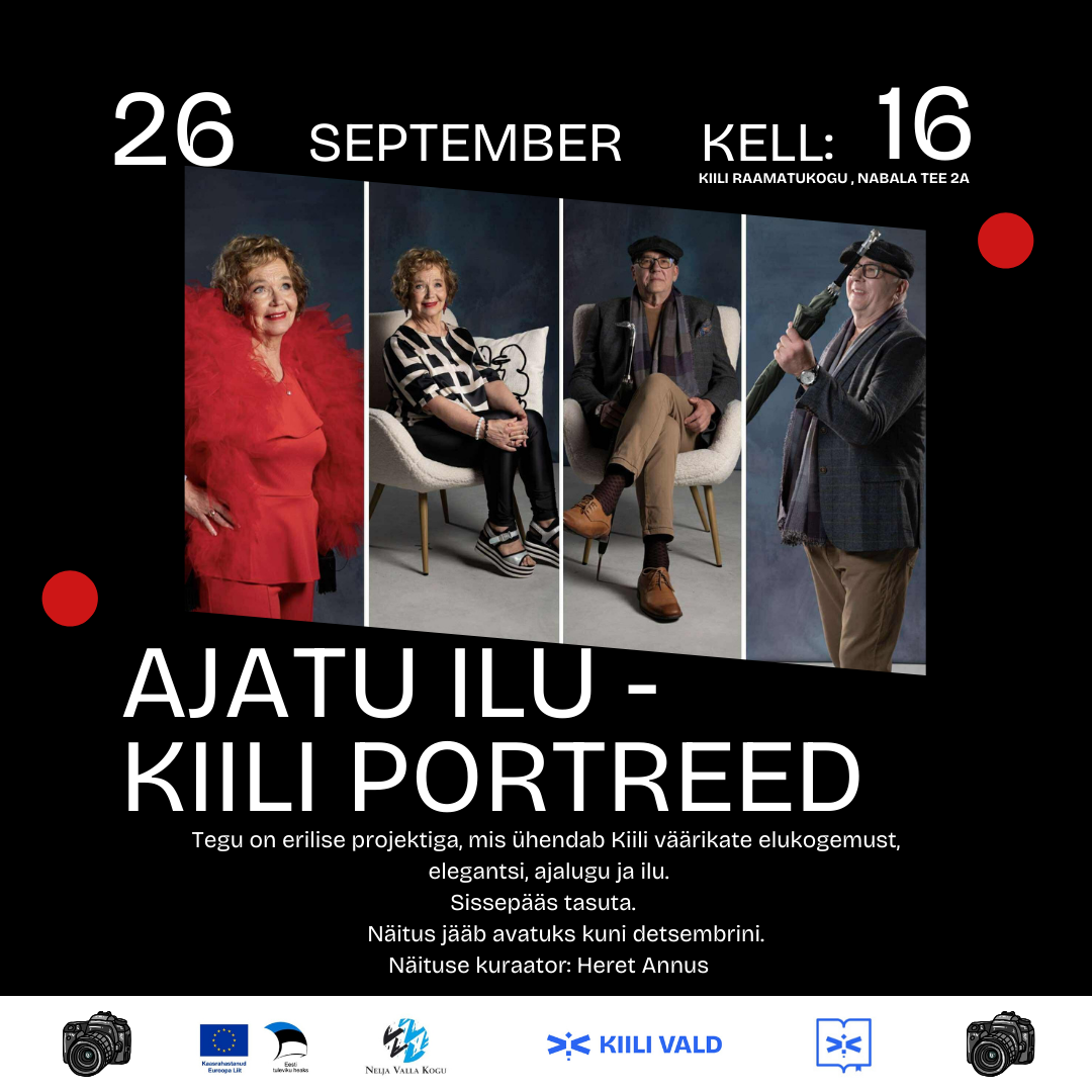 Reedel, 26. septembril kell 16 olete oodatud Kiili Raamatukokku fotonäituse “Ajatu ilu – Kiili portreed” avamisele.